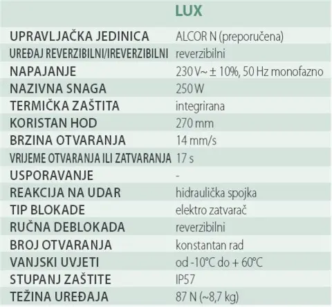 LUX - Elektro hidraulicni motor 230 VAC za dvorišna krilna vrata do 300 kg težine i do 2 m dužine